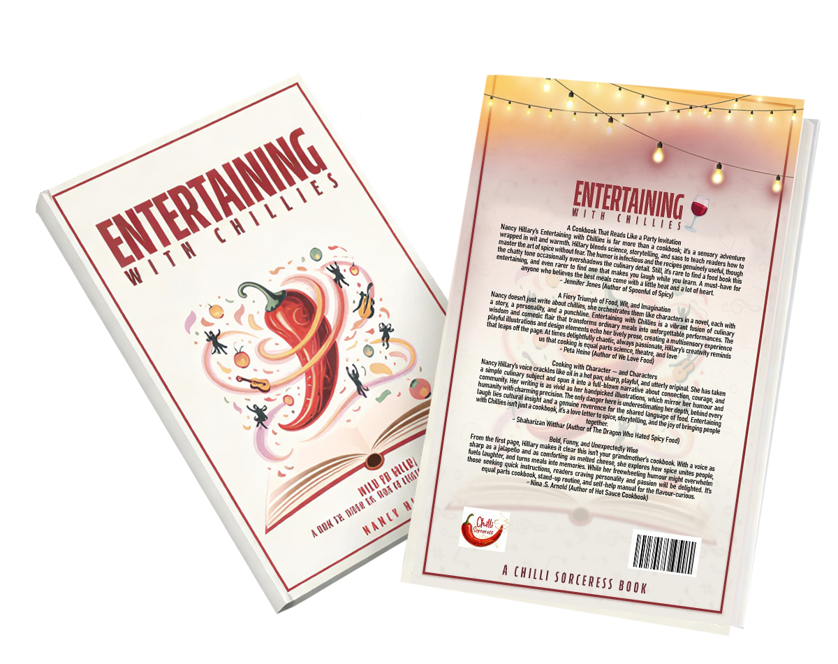 Entertaining With Chillies is available now—wherever books are sold and brave souls gather. Grab your copy, gather your courage, and let’s set the table on fire (metaphorically).
